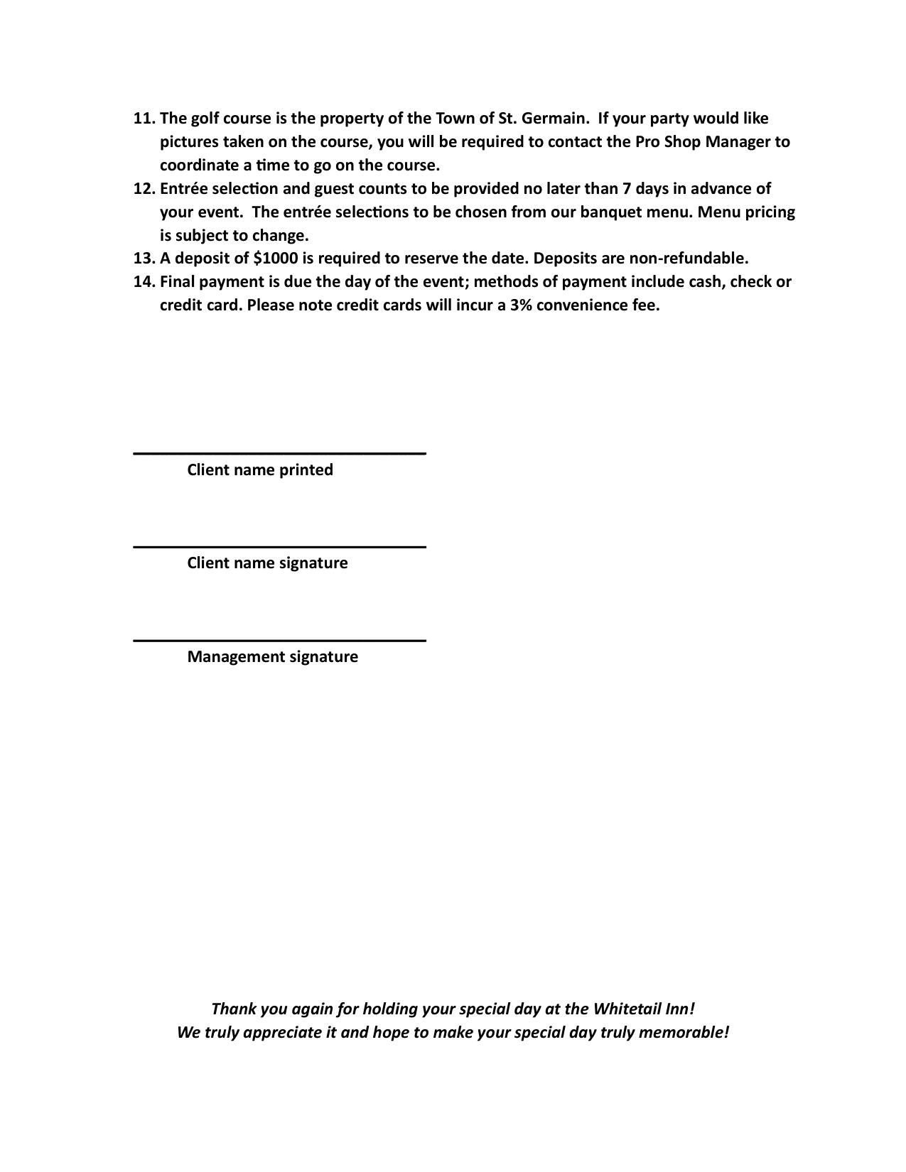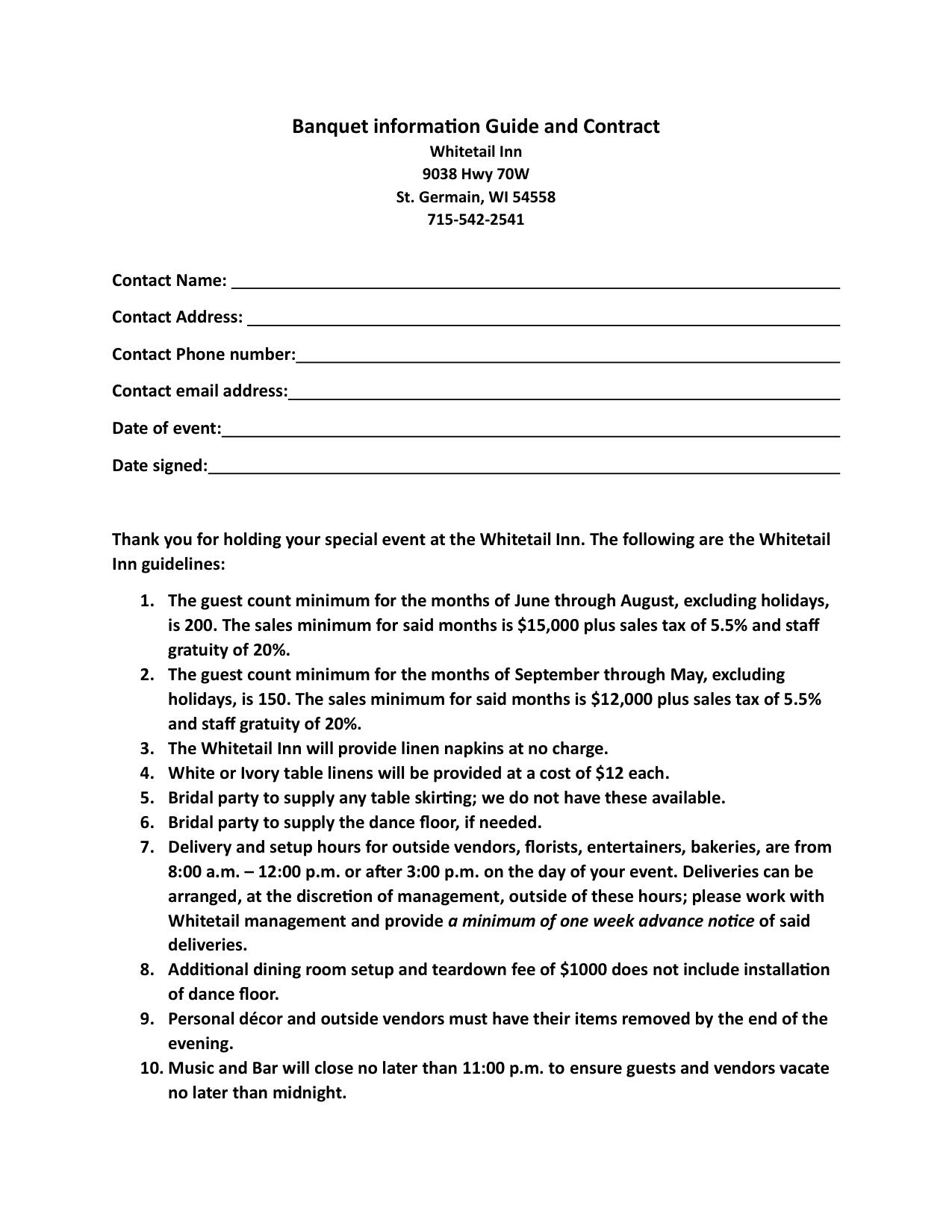 Whitetail Inn Banquet Contract